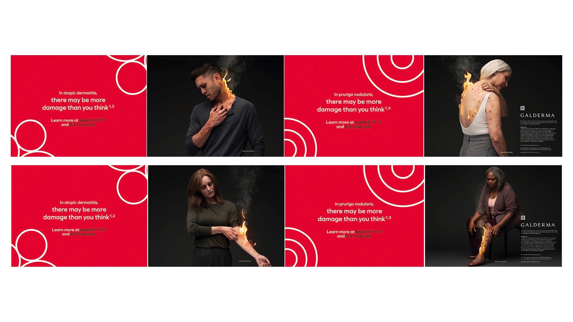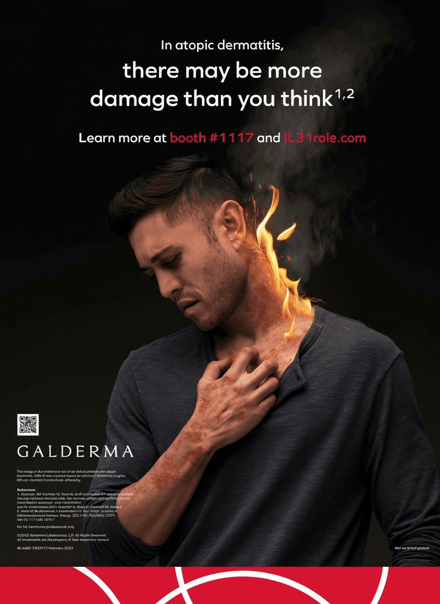 The primary challenge was to command attention within the visually saturated environment of a global medical congress. The campaign required a sophisticated visual language that could communicate the urgency of inflammatory symptoms specifically discomfort and itch without relying on product branding. We needed to maintain a delicate balance: delivering a powerful emotional hook while adhering to the clinical accuracy required for a healthcare professional (HCP) audience.